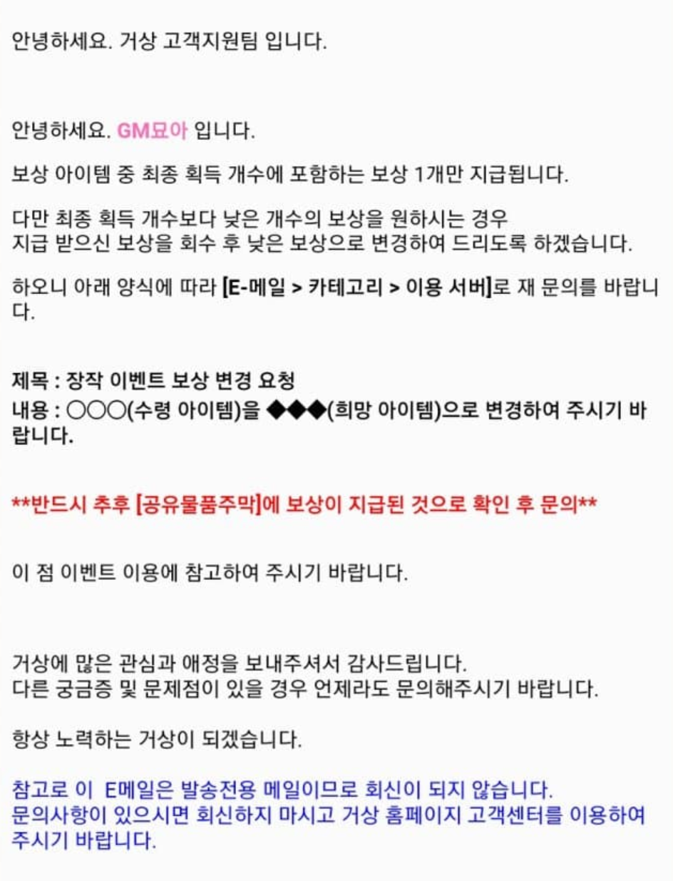 원하시는 희망 아이템으로 변경 요청하시면 된다고 하네요! 꿀팁!