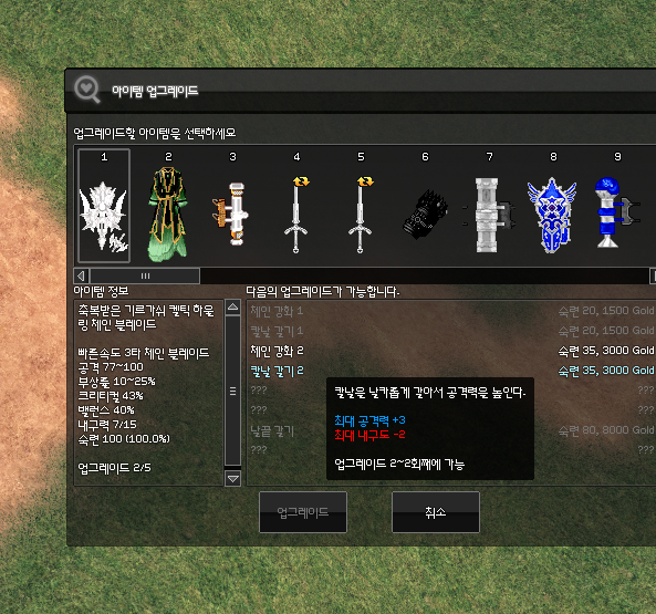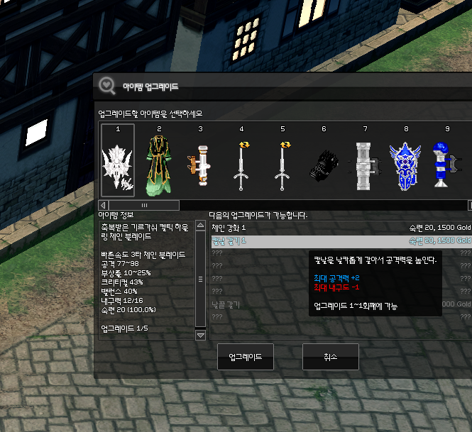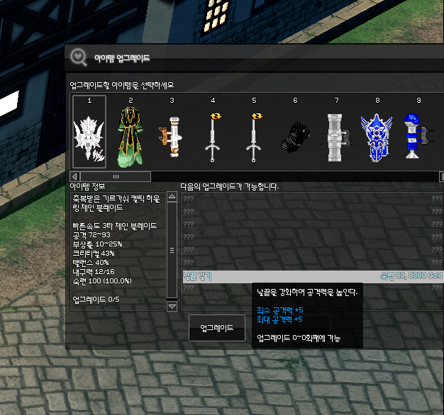 첫번째 개조인 최대 공격력을 +5 올려주는 날끝 갈기