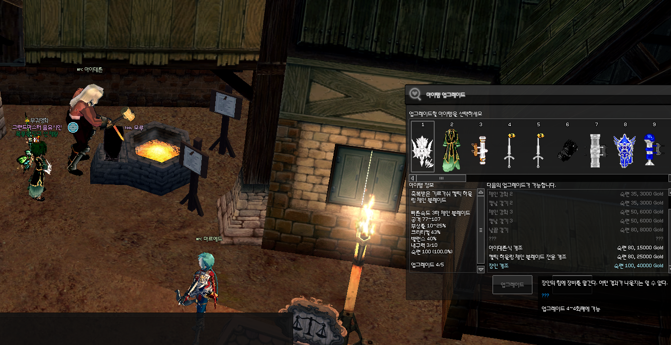 아이데른에게 가면 아이데른식 개조 또는 켈틱 하울링 체인 블레이드 전용 개조도 진행할 수 있지만, 꼭 장인 개조로 진행해주세요.