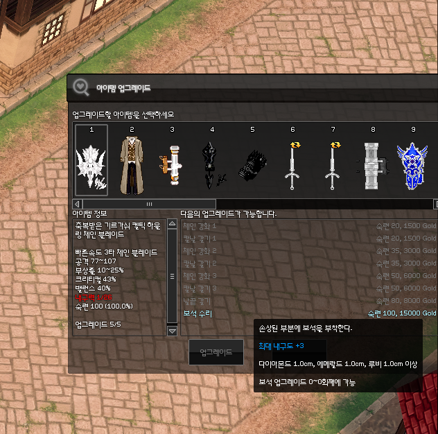 마지막 개조는 개조하느라 깎인 내구도를 조금이나마 복구해주는 보석 수리입니다.