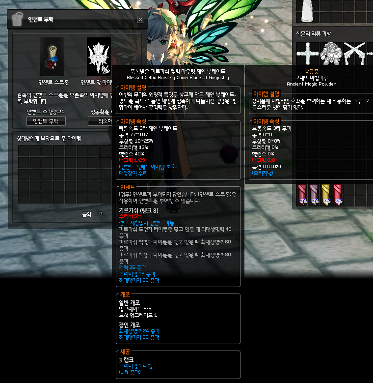 기르가쉬 매우 어려움을 돌아서 기르가쉬 인챈트 몇개 챙겨주고
