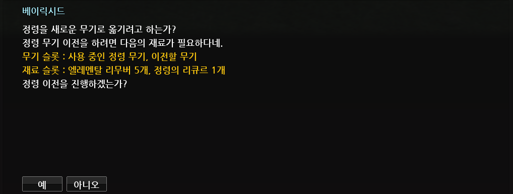 클래식 정령 무기를 정령 무기로 전환합니다. 전환을 진행하시겠습니까?