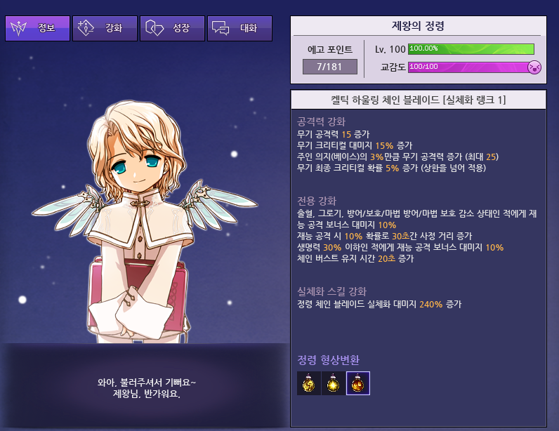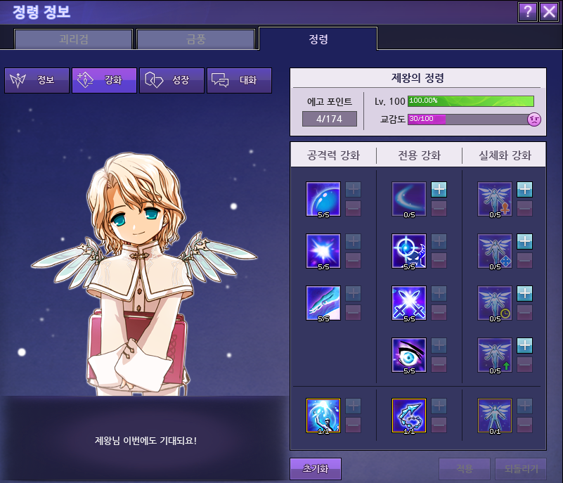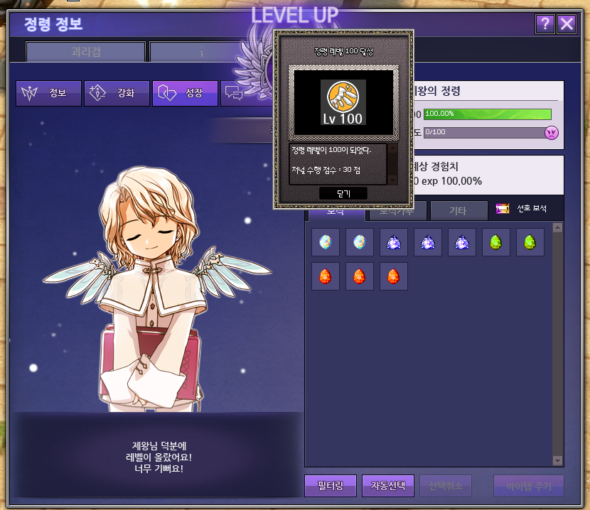 그리고 마침내 첫 정령 100레벨 달성!