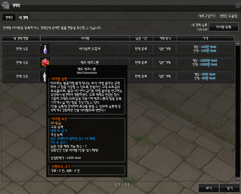 윈드 브레이커 16레벨 레드 에코스톤도 1500에 팔리고
