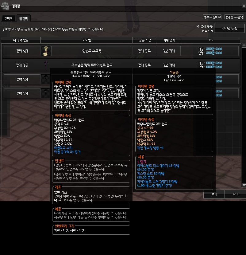 내구 57에 마공 24짜리 켈트볼 무려 600에 팔림 ㄷㄷ