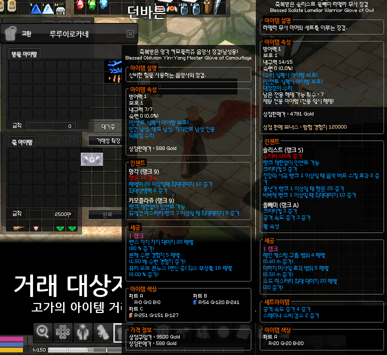 랜차 20레벨 장갑 2500에 구입