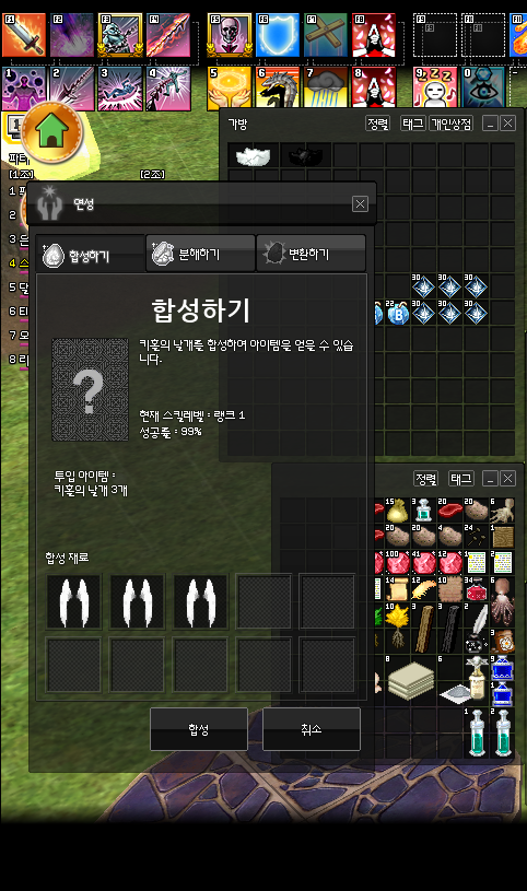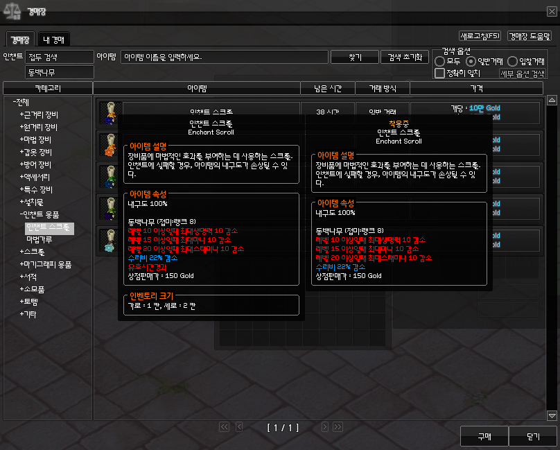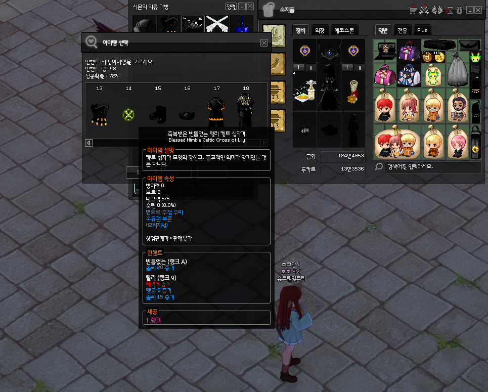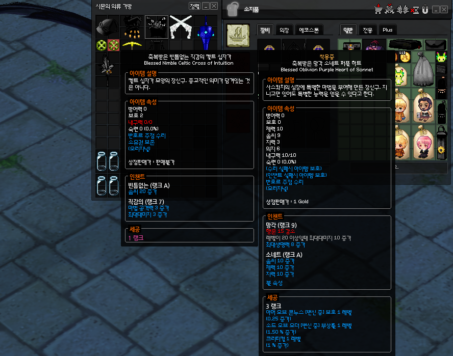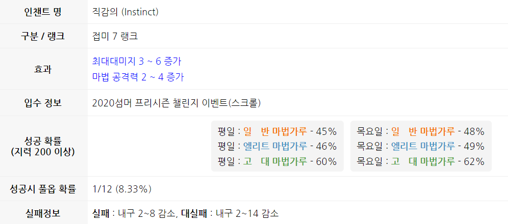 직감의 인챈트가 7랭이니까 8랭 밑작용 동백나무 인챈트부터 하나 사주고