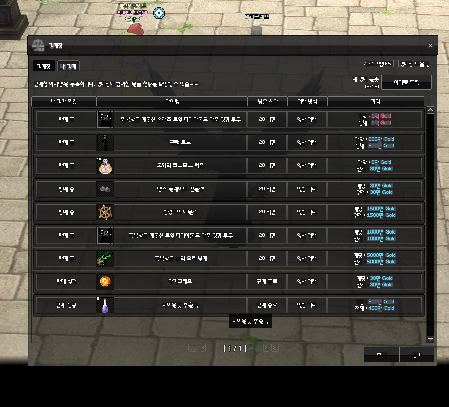 허겁지겁 마시카를 검색해보니 대펀3/어퍼5 모자가 1.2에 거래되고 있는 것을 발견!