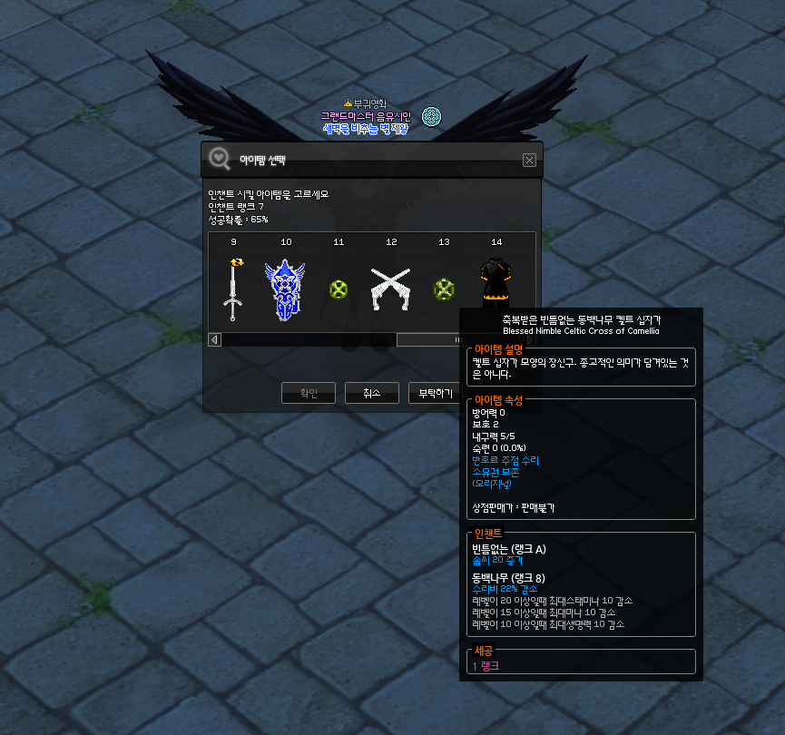 직감의 인챈트가 7랭이니까 8랭 밑작용 동백나무 인챈트부터 하나 사주고