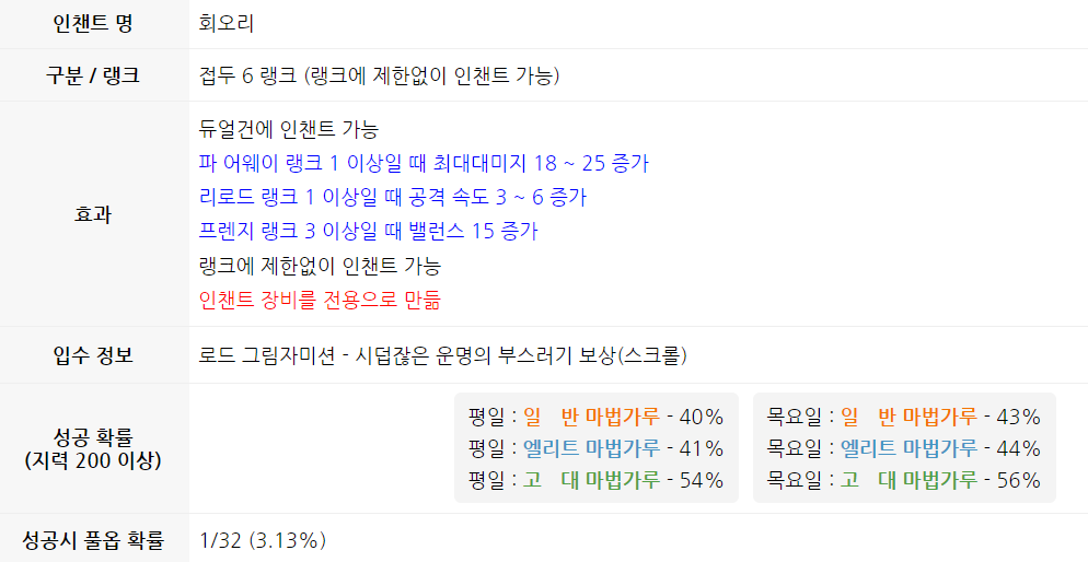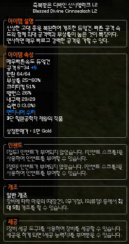 고자본 종결이신 분들은 디바인 신시엘라크 전용 인챈인 유인에다가 접두는 오피서의를 맥옵에 가깝게 띄우고 쓰시거나, 총으로만 풀공속을 챙기실 분들은 접미에 샤프 슈터를 쓰시면서 접두 회오리까지 사용해주시면 되겠습니다.