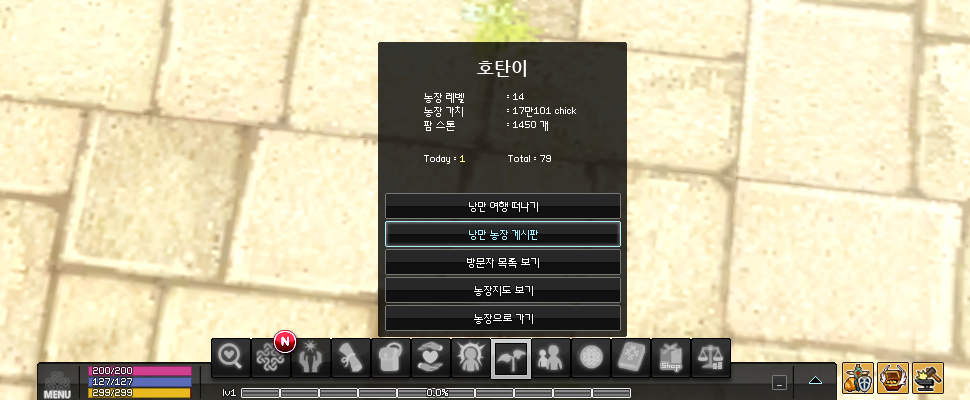 입장하는 방법은 화면 하단 인터페이스 새싹 모양의 낭만 농장 아이콘을 누르신 후에 '낭만 농장 게시판'으로 들어가셔서
