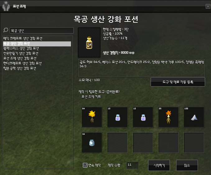 제작 성공률을 조금이라도 올리기 위해 생산 파티 또는 목공 1랭 8명 파티에 참가해주세요. 당연히 목공 1랭 8명 파티가 더 좋지만 망돌린 서버처럼 사람이 없거나 여의치 않은 경우 그냥 생산 파티라도 들어가주시면 됩니다.