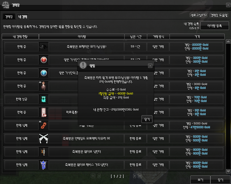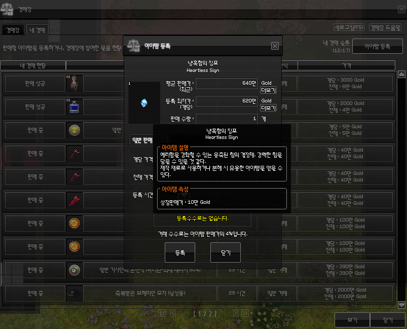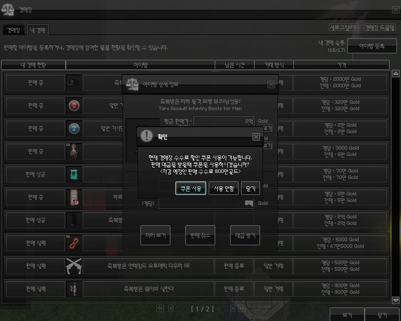 수수료만 800만원이라니 고이 아껴둔 경매장 100% 수수료 할인권도 기분 좋게 사용하고