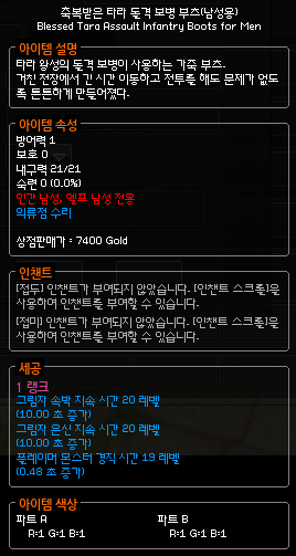 이어서 1랭 0줄짜리 신발에 세공해봤는데 여기서도 너무 깔끔한 옵션이?