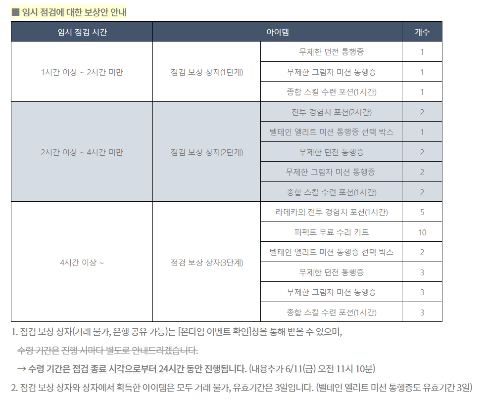 임시 점검 할 때마다 뿌리는 점검 보상 상자