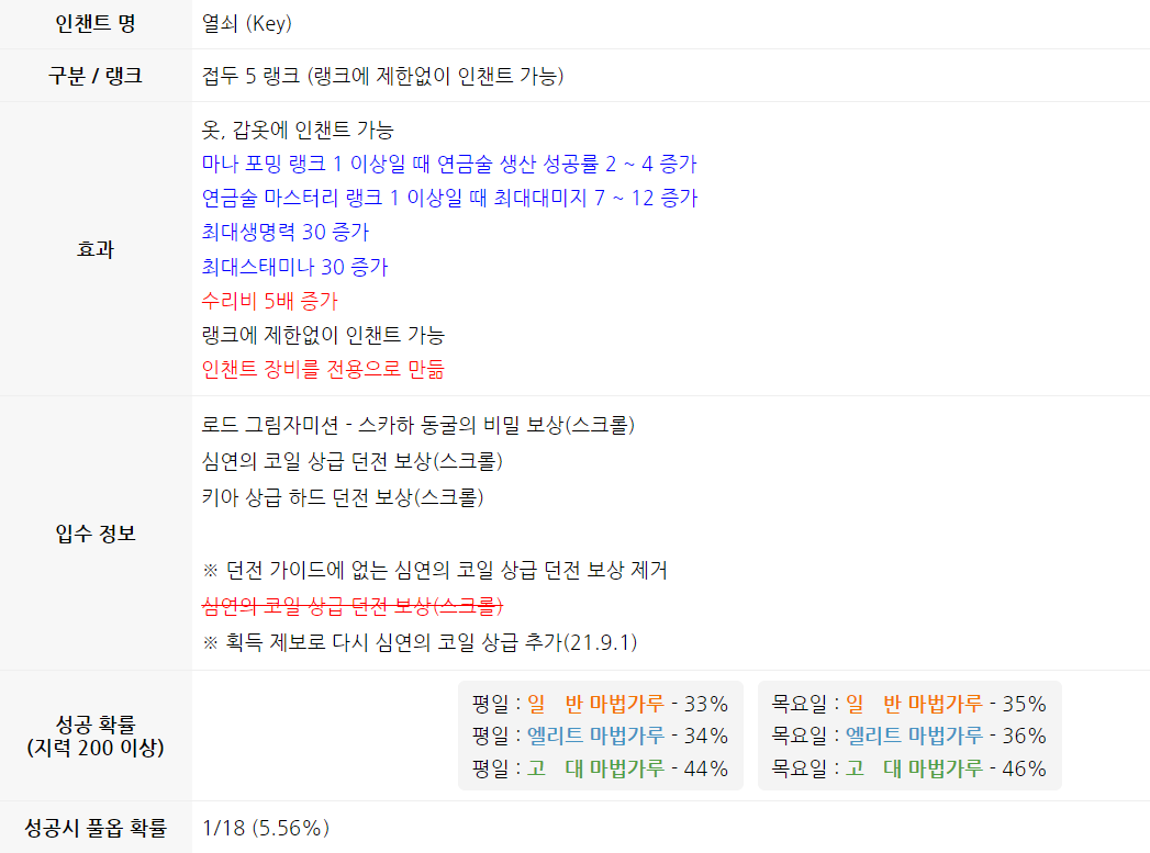 열쇠 인챈트가 값이 나가는 편인 만큼 역챈하다 실패하거나 학자만 뽑혀나올 수 있어서