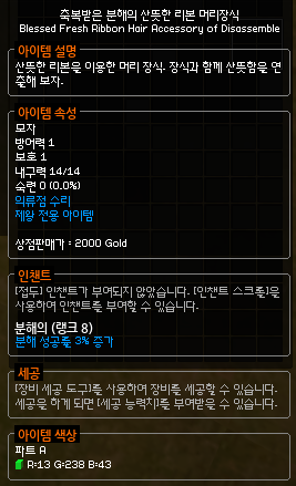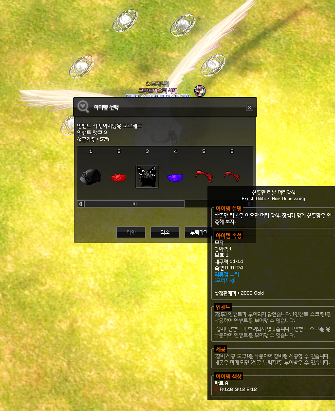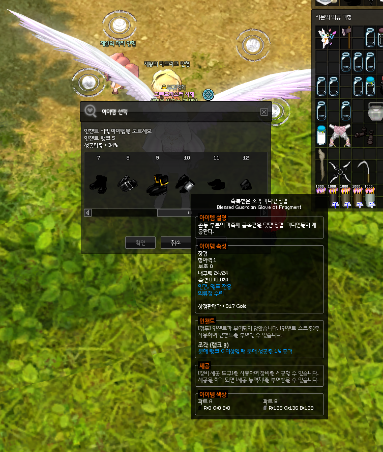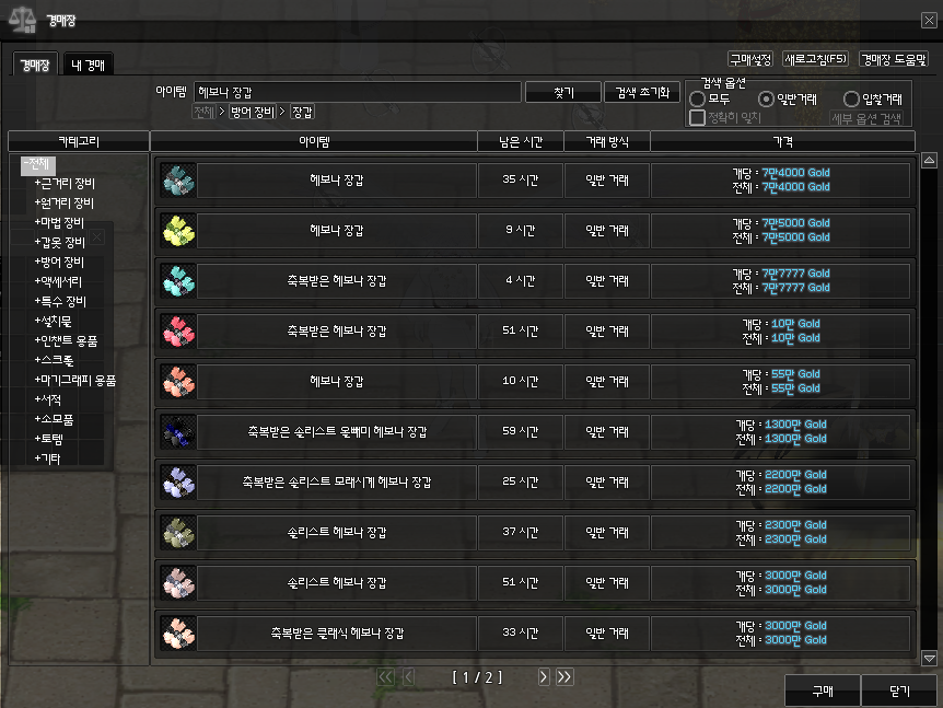 머리에는 창조한 인챈트가 종결이긴 하지만 매물이 많지 않은 편이고,