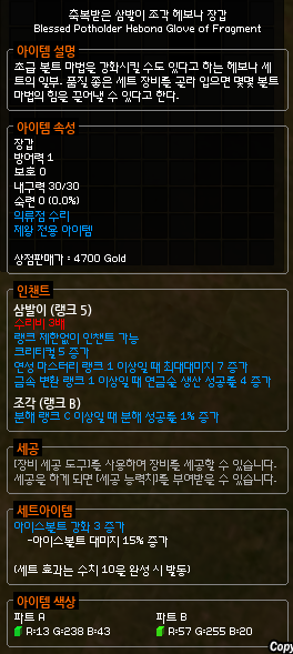머리에서 창조한 인챈트를 바르지 않기로 하면 분해 세트를 맞추는데 가장 비싼 돈이 드는 부분인 옷입니다.