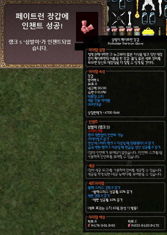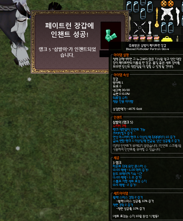 삼발이 인챈트가 성공한 장갑에 마무리 하듯이 발라주시면 됩니다.