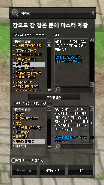 분해 마스터 타이틀의 2% 그리고 + 감으로 감 잡은 2차 타이틀로 깨알같은 효과 증폭