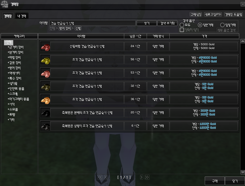 타라 그림자 미션 보상에서 드랍되는 조각 견습 연금술사 신발은 매우 저렴한 가격에 구입할 수 있습니다.