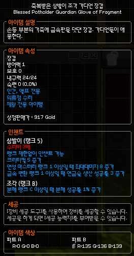 경매장에서 3~5숲이면 구입할 수 있는 그저 그런 옵션의 페이트런 장갑에 첫번째 트라이