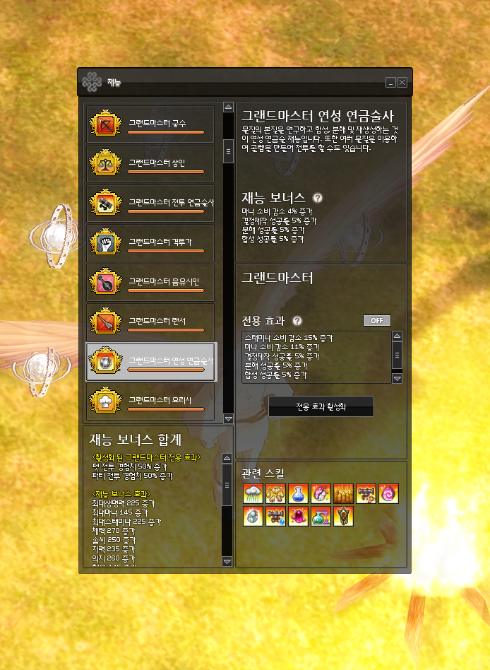 분해셋 외에 분해 성공률을 올려주는 요소로는 그랜드마스터 연성 연금술사 전용 효과 5%와,