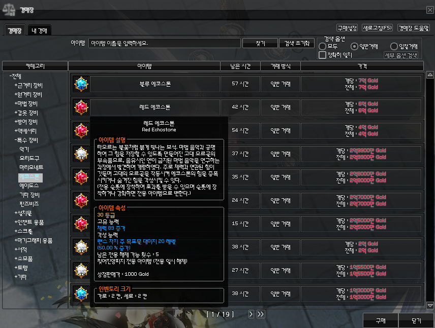 몇달 전 거래가 보면 8억~9억에도 거래된게 있는데 에코스톤 확률 이벤트 덕분에 물량이 많아졌는지 1~2억 정도 저렴해진 것 같았다. 그래도 이게 어디야! 7억이라니! 경매장에서 에코스톤을 가격 순서로 검색해보면 가장 위에 나오는게 악효 에코스톤이고