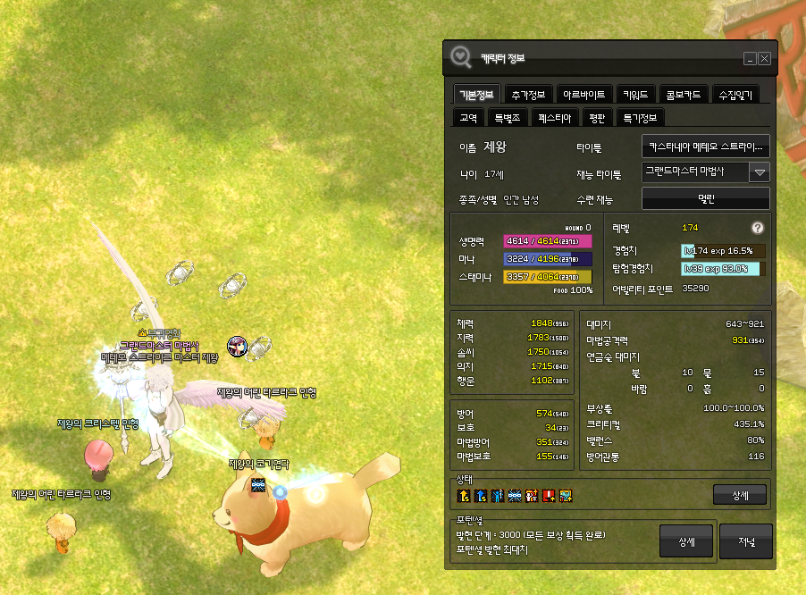 방직 장갑이랑 메테오 스트라이트 타이틀의 힘으로 마공 931 달성