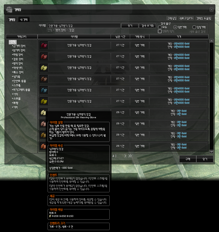 '전문가용 실크방직 장갑' 내구력 27짜리를 경매장에서 하나 사준 뒤