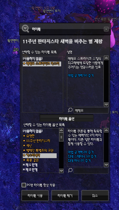 다음 스펙업은 마공을 50이나 올려주는 '메테오 스트라이크 마스터' 타이틀 따기