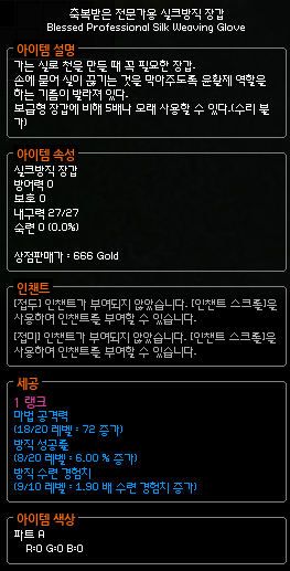 이렇게 상대적으로 저렴한 가격에 마공을 엄청 올릴 수 있는 방직 장갑 스펙업