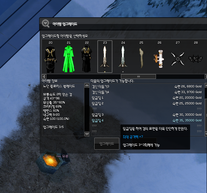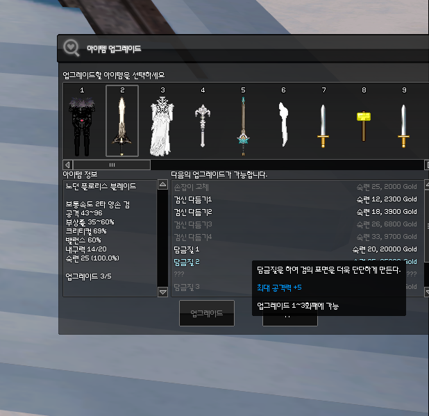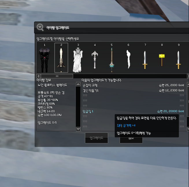 담금질 1 - 담금질 2 - 담금질 3 - 담금질 4 - 노던 플로리스 블레이드 전용 개조 - 보석 개조