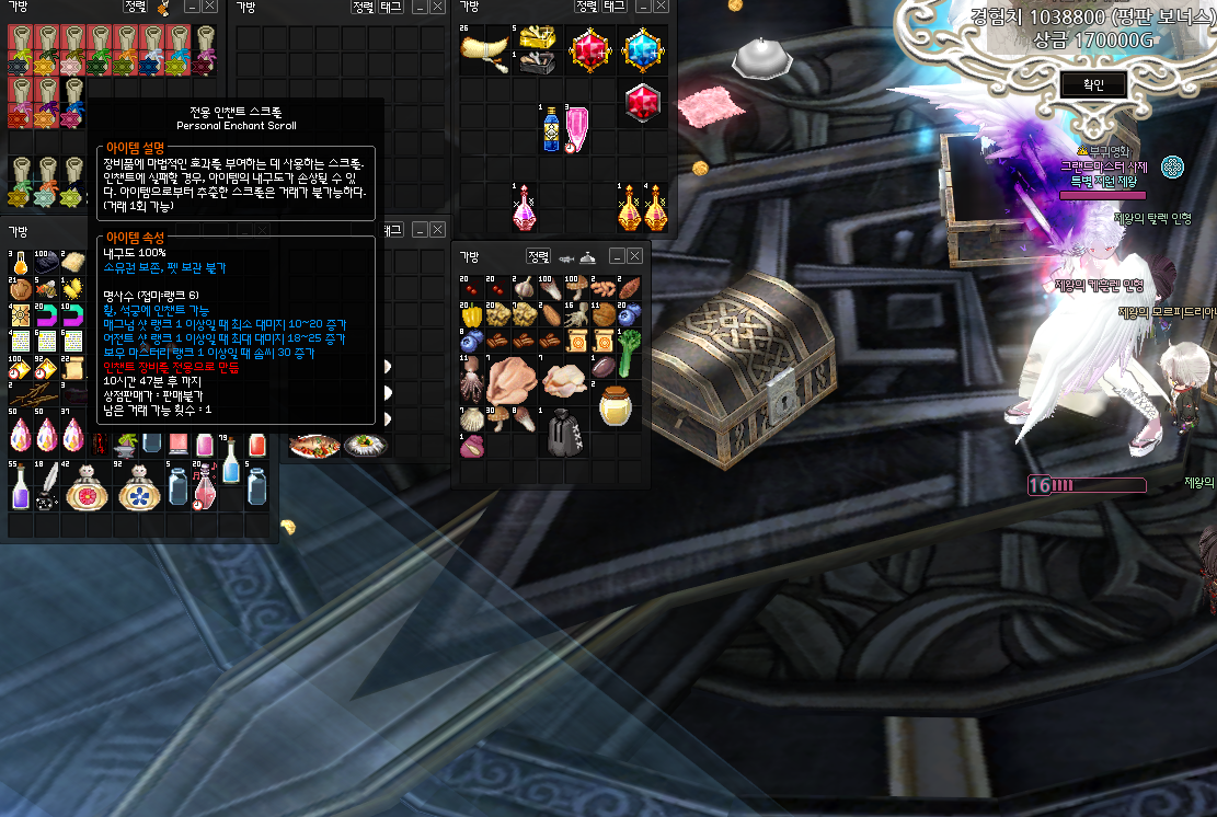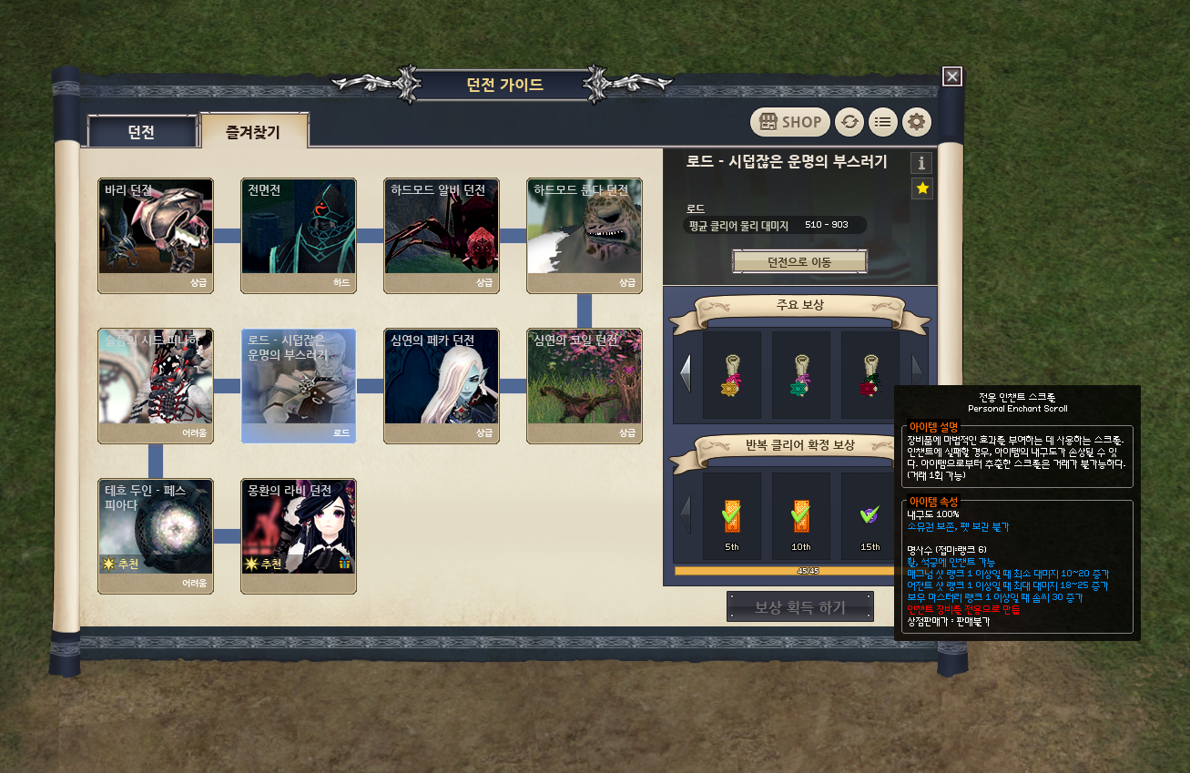시덥잖은 운명의 부스러기 미션에서 나오는 인챈트 4종(운명의, 랜시아, 회오리, 명사수) 중에서 7000~8000숲으로 가장 비싼 명사수 인챈트! 여기서 먹을 수 있는 최고 득템을 먹다니 이제 하산하겠습니다ㅠㅠ