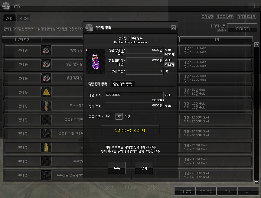 바로 경매장에 6800에 올려줬다