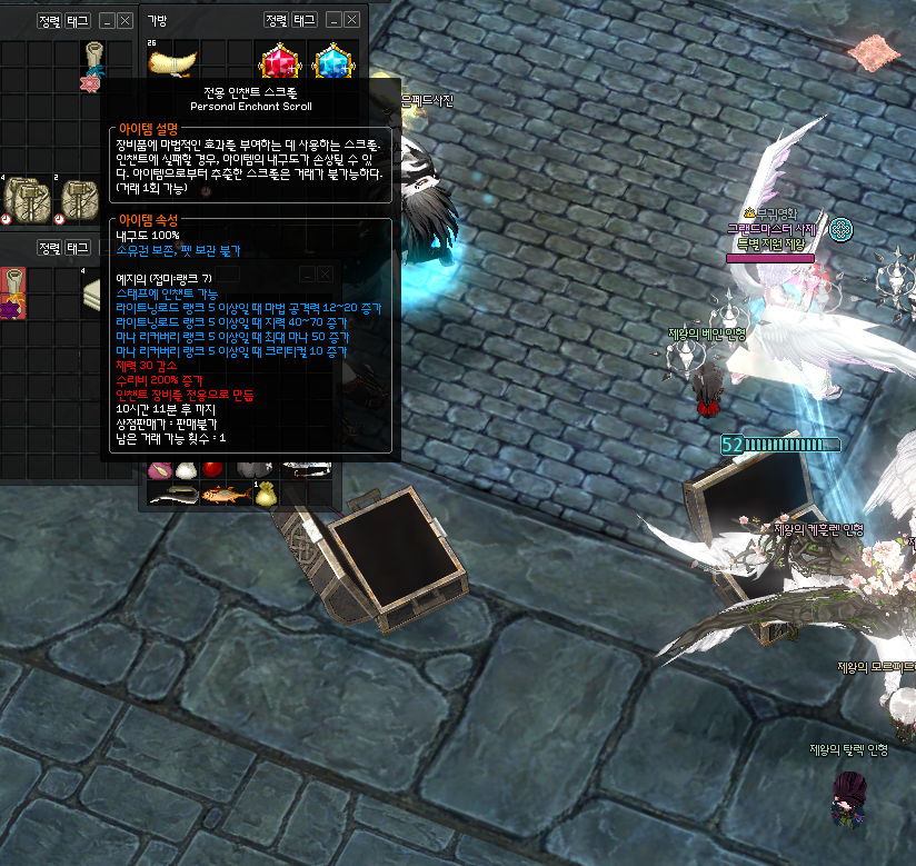 시덥잖은 운명의 부스러기 미션에서 나오는 인챈트 4종(운명의, 랜시아, 회오리, 명사수) 중에서 7000~8000숲으로 가장 비싼 명사수 인챈트! 여기서 먹을 수 있는 최고 득템을 먹다니 이제 하산하겠습니다ㅠㅠ
