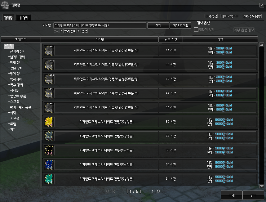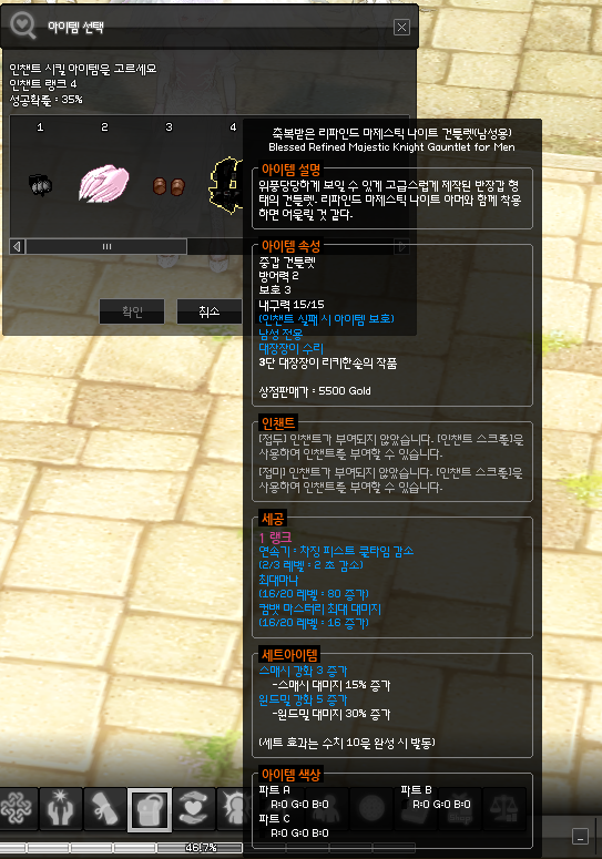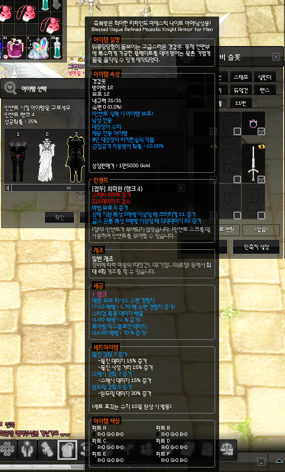 아머, 건틀렛 두 부위만 스매시와 윈드밀 강화가 둘 다 발동되도록 적당히 아머 7000숲, 건틀렛 5000숲에 구입했다.