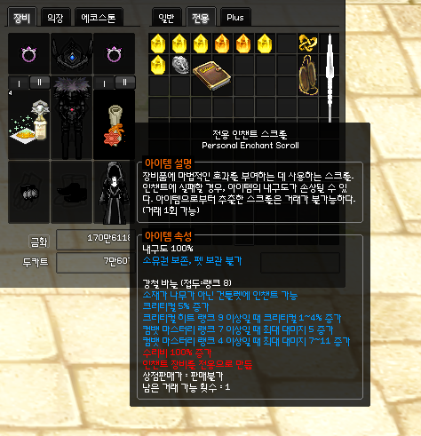 전용 인챈트 스크롤이 많이 뜨기는 뜨는데