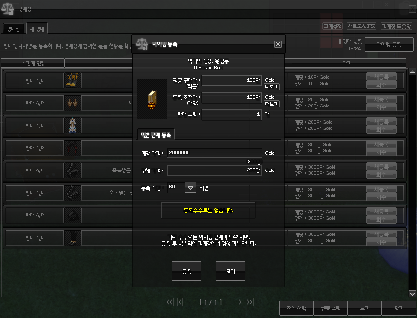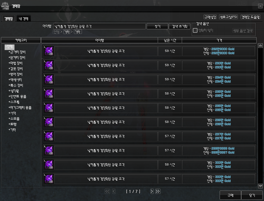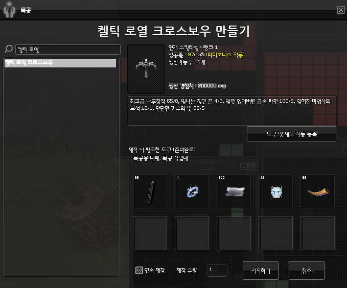 나머지 재료들은 다 만만하고 빛질끈 정도만 3개 가격으로 300숲 정도면 1회 제작이 가능했다.