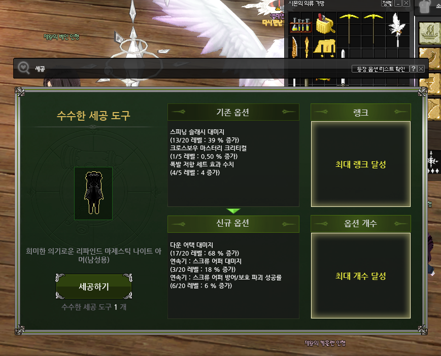| [마비노기] 지배자의 날개 합성 (0) | 2022.12.31 |