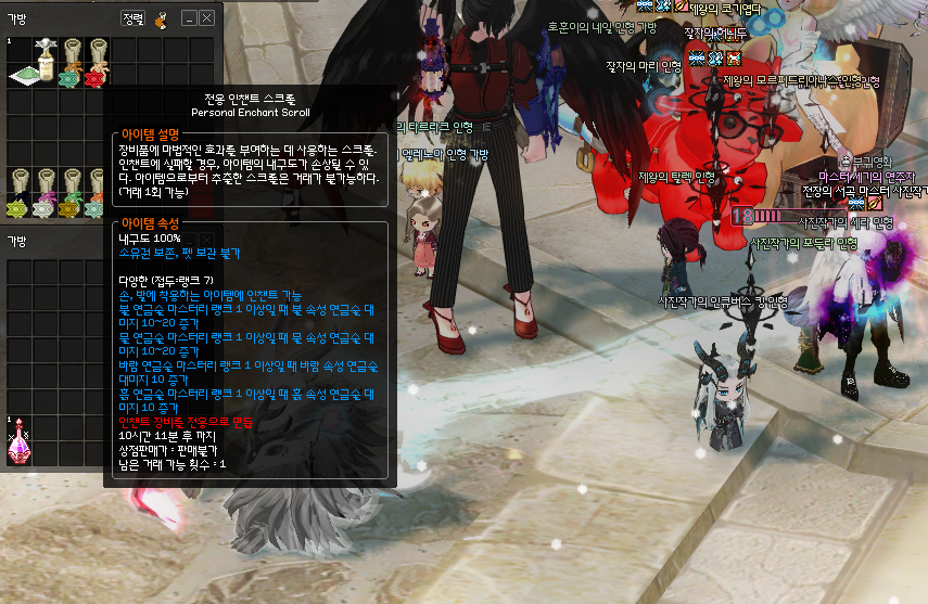 이로써 시덥잖은 운명의 부스러기에서 나오는 인챈트 4종(운명의, 랜시아, 명사수, 회오리) 다 먹어봤네