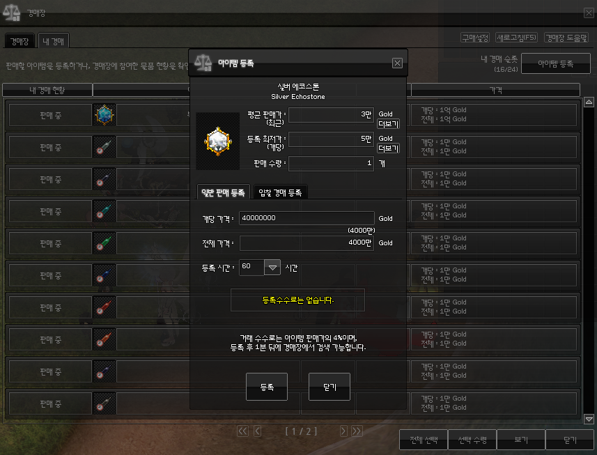 4000에 경매장 올리고